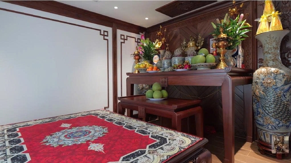 Những mẫu bàn thờ gỗ tự nhiên sang trọng tôn nghiêm được Mộc Việt thi công hoàn thiện tại công trình