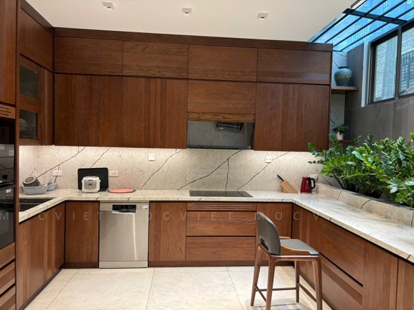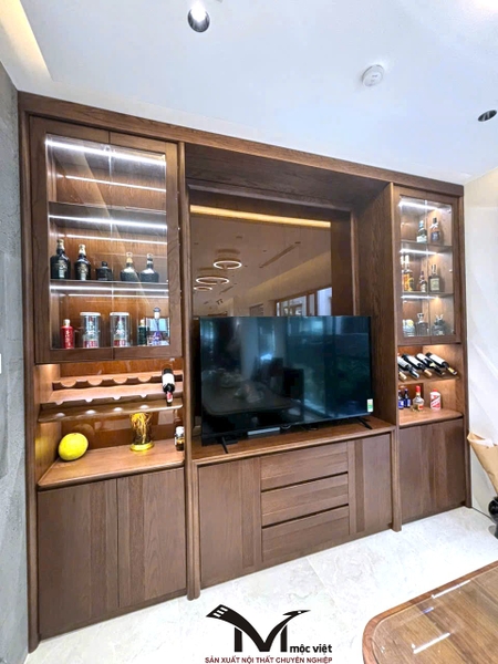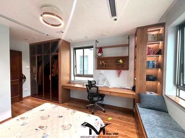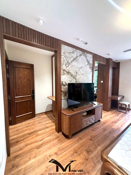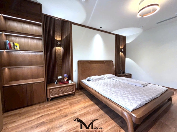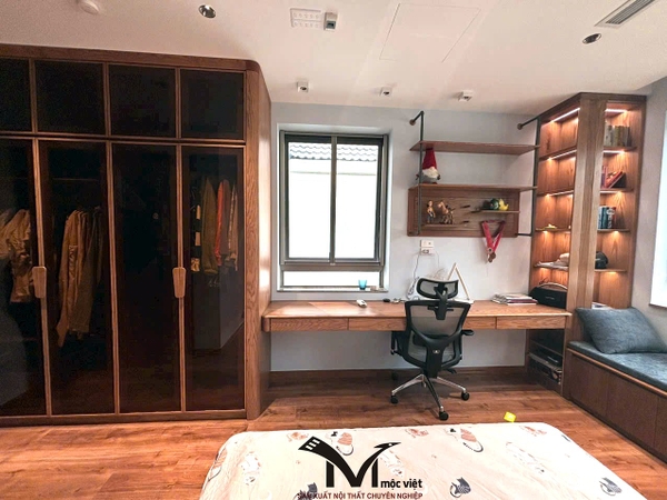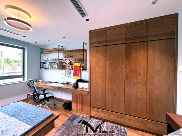 Mộc Việt sử dụng 2 chất liệu chủ đạo là gỗ Óc Chó và gỗ Sồi Nga , kết hợp thiết kế không gian hợp lý giúp gia chủ có được không gian sống ấm cúng tiện nghi và sang trọng