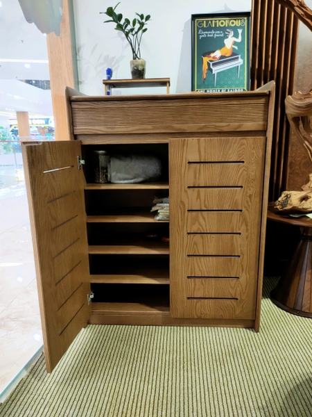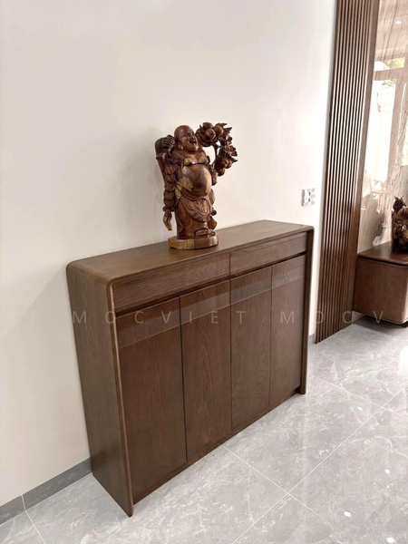 Tủ giày gỗ tự nhiên được thiết kế và sản xuất trực tiếp tại xưởng Mộc Việt, mang đến sự tiện nghi và thẩm mỹ cho không gian sống. Với chất liệu gỗ cao cấp như Sồi Nga, Sồi Mỹ hoặc Óc Chó, sản phẩm đảm bảo độ bền vượt trội, chống cong vênh, mối mọt và giữ được vẻ đẹp sang trọng theo thời gian
