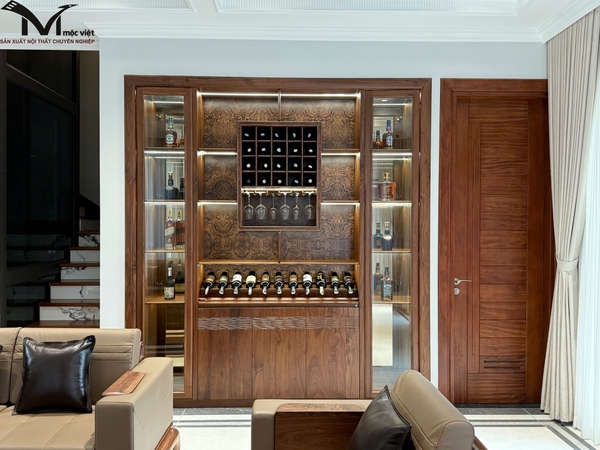 Tủ rượu – tủ trang trí gỗ tự nhiên cao cấp từ Mộc Việt là lựa chọn hoàn hảo để nâng tầm không gian sống của của gia chủ.